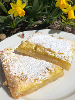 Sunday’s sunny skies was the perfect day to bake a batch of lemon squares. I haven't made these in years; they're not too sweet, are lemony tart and oh so delicious.