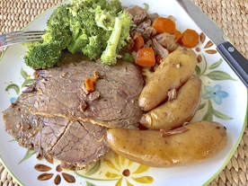 The meat came out fork tender with a nice light sauce that also permeated the veggies. The pot roast met my husband's expectations. So if you have a soccer game, cross country meet or apple picking weekend coming up, this can be your go head, one pot, easy to prepare supper.