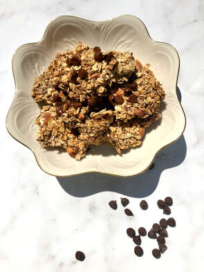 You’ll need gluten-free rolled oats, unsweetened coconut shreds, chop nut of any kind, flaxseed (promotes healthy digest and regularity), chia seeds (provide fiber), cinnamon, coconut sugar, maple syrup, coconut oil, hot water, vanilla extract and Hu dark chocolate. (Ms. Mansfield recommends this brand of chocolate, but note she has partnered with them.)