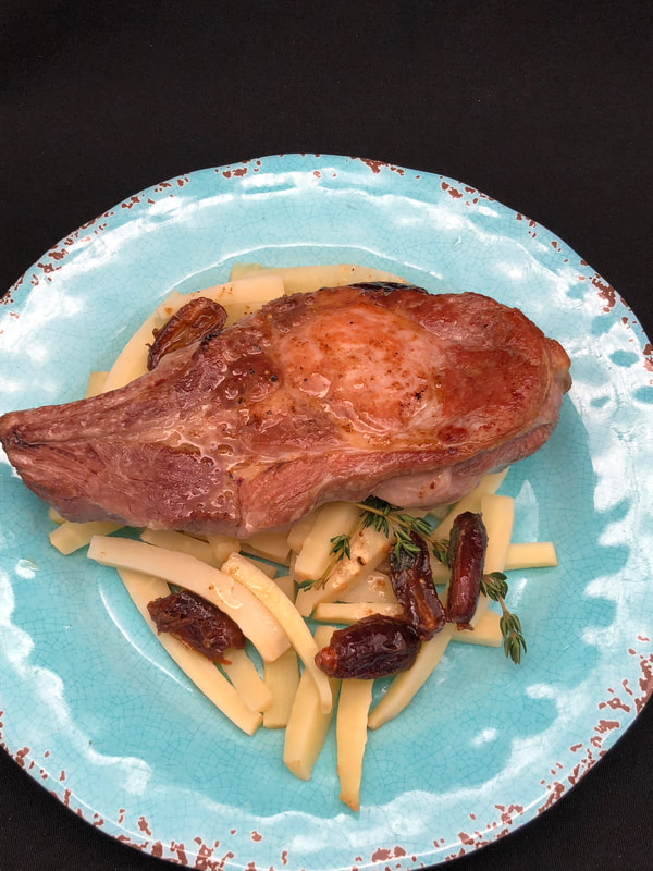 Pan-Seared Pork Chops with Sage, Dates and Parsnips