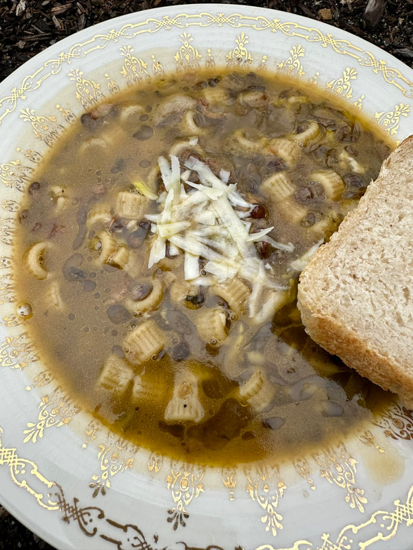 Lentil Soup with Pasta, Bacon and Garlic