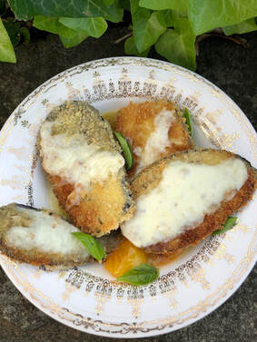 Fried Eggplant with Sungold Tomatoes, Basil and Mozzarella