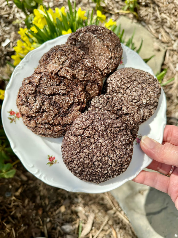 In the past year or so, I’ve been searching for the perfect chocolate sugar cookie that is slightly soft and fudgy tasting. I’ve made Sara Kieffer’s recipe that’s excellent and one that I found in my files, but it didn’t have that rich chocolate flavor. I’ve also made a recipe from “Southern Living Magazine” that had the texture and flavor I was looking for. Then recently, America’s Test Kitchen posted on Instagram their version of a chewy sugar cookie. Notable differences with their recipe is the addition of dark brown sugar, an egg yolk, both baking soda and baking powder and almost twice as much butter.