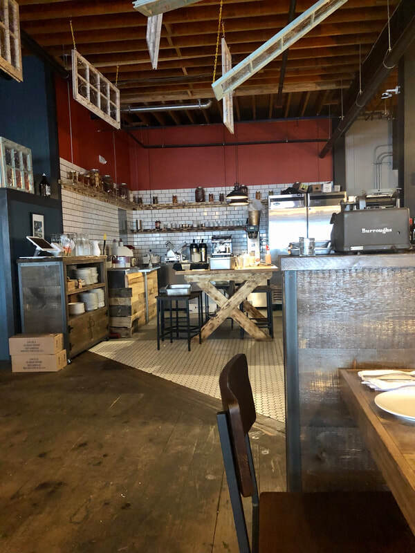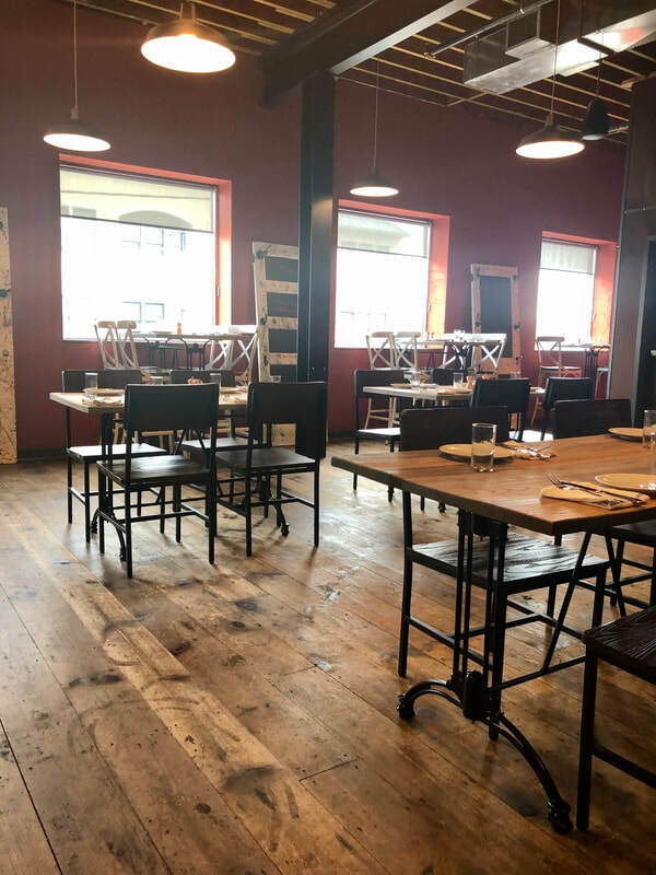 Friends of ours ate at Belmar Kitchen and had positive comments on the meal they had. On Wednesday evening my husband and I had an impromptu dinner date reservation for 5:30. At that time the restaurant was relatively quite for midweek dining. Our hostess asked where we wanted to sit. I explained that this was our first time and where would she suggest sitting if she was trying to impress us. She recommend the back dining room. The minimal aesthetic room featured dark terra cotta walls, wood top tables set upon wrought iron stands and an open concept kitchen with a wood-burning pizza oven.