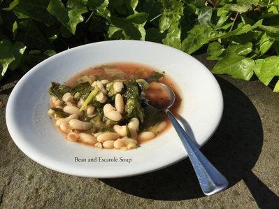 While my bean and bean escarole soup didn't look our neighbor Ann's, but it was delicious. I even threw in a Parmesan Reggiano rind to flavor the broth. This recipe is a keeper.