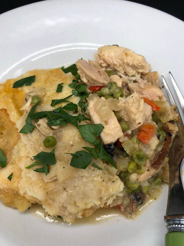 The was a filling was velvety and the chicken succulent. The combination of vegetables was fresh and tasty. The pastry top was light and delicate. Overall, a terrific one dish family meal.