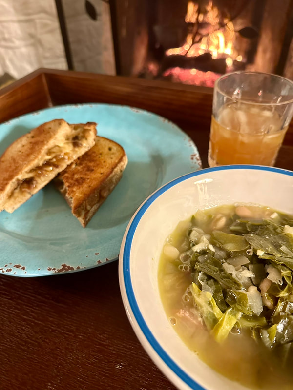The preparation began by sautéing the vegetables, minus the collards and garlic, in olive oil until browned. I stirred in the garlic and cooked until fragrant. I added the stock, beans, rough chopped collard greens and a bit more salt. Though the recipe called for simmering for 30 minutes, my soup needed a bit more time until the greens were tender. When done, I added chopped parsley and apple cider vinegar. It seemed odd to add vinegar, but upon doing a bit of research, it counteracts any bitterness from the greens and it balances out the richness of the soup. The soup was surprisingly delicious! The broth had a nice nourishing flavor, texture from the beans, a bit of smokiness from the ham hock making a very satisfying soup. I’ll be looking forward to collard greens in my cooking future.