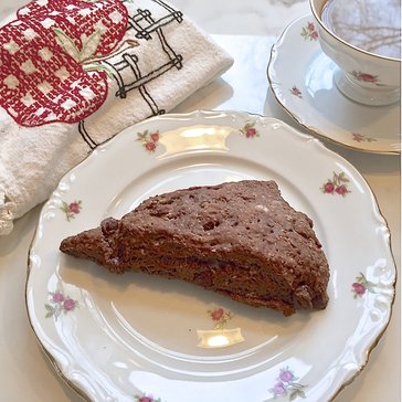 The other day I was going to be out for quite awhile. We have a fifteen year old Brittney Spaniel that is beginning to require even more attention than we give her. I called on a neighbor to come over several times to let her out. How do you thank neighbors who are kind enough to do this task for you? I find sharing a home baked item is always appreciated.I was in the mood for double chocolate scones, however, I know that if I baked them, I would find myself eating more than just one.
