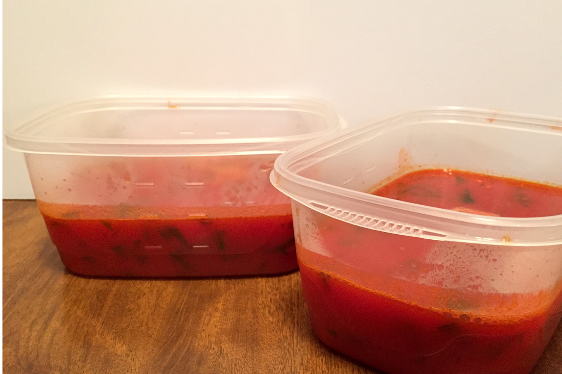 I was feeling rather ambitious when I decided to cook 25 pounds of plum tomatoes for fresh tomato sauce for future use. I started making the sauce Monday afternoon after work. Using an old scale that my late mother-in-law gave us, I weighed off 6 pounds of tomatoes per batch in which to make a double batch of tomato sauce. I used both a in a six and eight quart pot. I was able to make six, half gallon containers, which I'm storing in a friend's freezer.