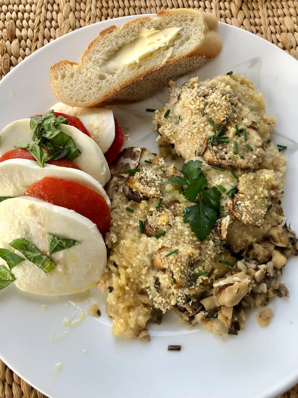What a delicious preparation. My poor husband was looking forward to fried fish fillets, but he also enjoyed the fish made this way. The au gratin mixture was moist and had enough acid to make the fish a light and refreshing meal.