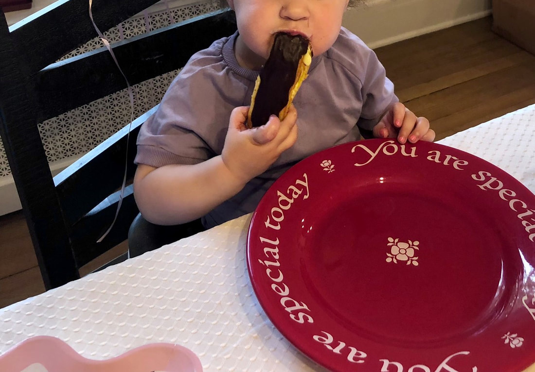 My son’s birthday was in January and he loves chocolate éclairs. I found a recipe for Classic Chocolate Éclairs by Samantha Senevirate in The New York Times. In my first attempt, I used a stainless-steel cake decorating tool with poor results. Now, my granddaughter was turning two and I thought this was the perfect time for a second attempt. I was off to Shore Cake Supply in Ocean Township, NJ to select better tools, disposable piping bags and a large star piping tip.