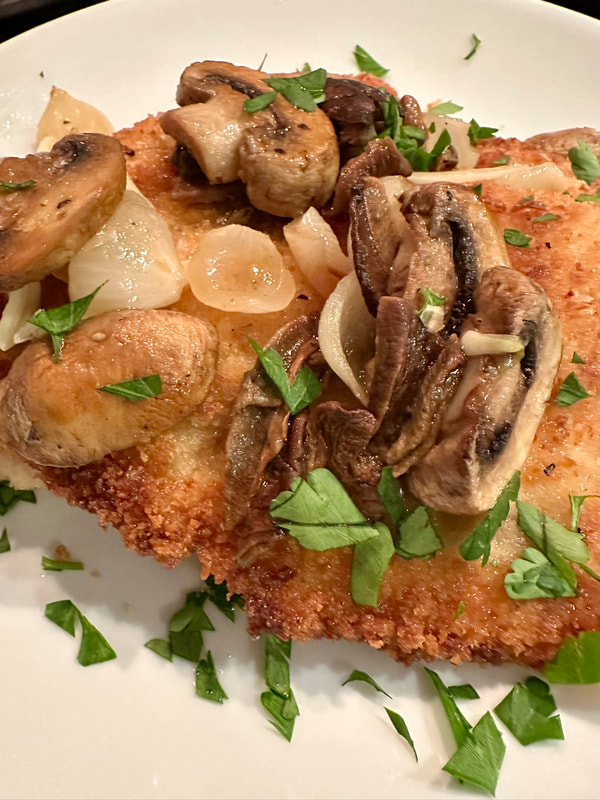 Fried Chicken Cutlets with Onions, Wild Mushrooms and Marsala