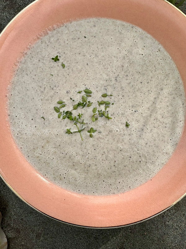 During the winter, I prepare a lot of soups. Pea soup is a favorite as well as butternut squash apple soup. However, there’s one I recently craved and that’s creamy mushroom soup. Many, many years ago, “Bon Appétit Magazine” published a mushroom soup from Wolfgang Puck’s that was rich and creamy. I held onto that magazine just for the recipe, but after Super Storm Sandy, my collection of old “Bon Appétit” and “Gourmet” magazines were tossed. I was able to locate a copy of the recipe online. What I loved about the soup was its richness and how the addition of thyme imparted such a wonderful flavor. I had a similar soup at the now defunct Manor Restaurant in West Orange, NJ.