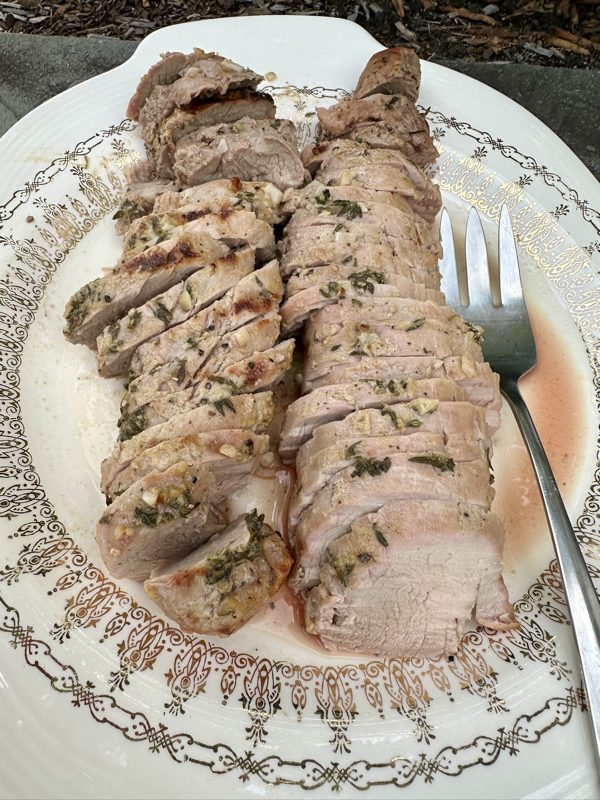 Over the Fourth of July holiday my daughter and her family joined us for several days. Pleasing the taste of children and adults is a true balancing act. I decided to prepare pork tenderloins using a recipe by Lidey Heuck which appeared on The New York Times/NYT Cooking website. Other than the pork you’ll need extra-virgin olive oil, minced garlic, fresh (or dried) thyme leaves, honey, Dijon mustard, kosher salt and black pepper.