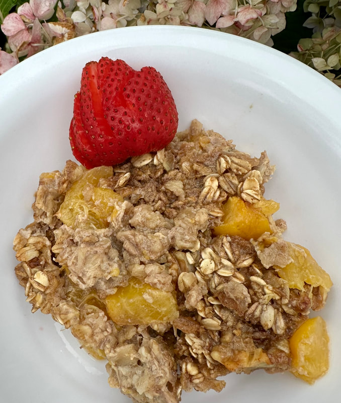 Now that New Jersey peach season is in full swing, I tweaked Melissa Clark’s recipe for Baked Oatmeal with Berries and Almonds to work with peaches. First I made a tiny cross on the bottom of the peaches and blanched them in boiling water for approximately 30 seconds. This enabled me to peel off their skin. Next, I cut segments into the peach and cut it away from the pit. In place of almonds, I used toasted walnuts that I coarsely chopped and used 1/4 teaspoon of cinnamon in lieu of nutmeg. The baked oatmeal came was delicious and had a lovely sweet taste from the peaches. The peaches were full of flavor and was a great change from using berries. Give it a try while peaches are still available. I’m going to purchase some and prep them for baking, but freeze them in portion sizes for fall and winter when I’m yearning for a bit of summer.