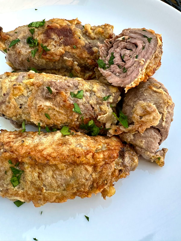 Makes about one dozen rolled cutlets, serves 6