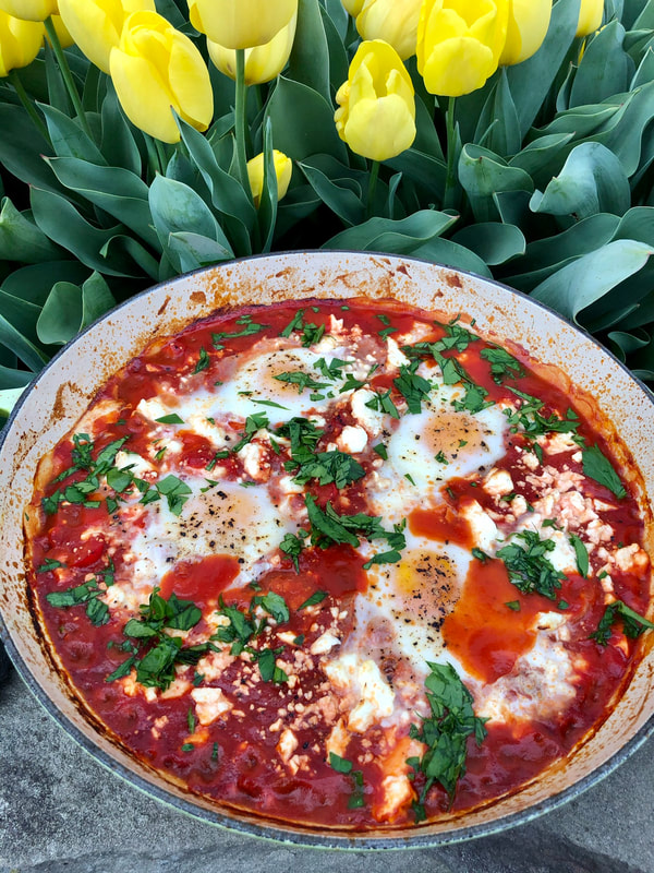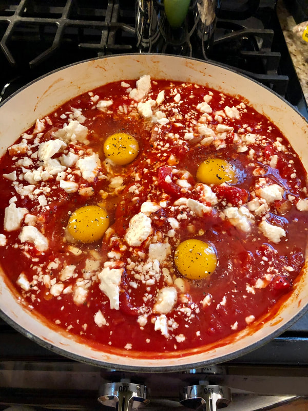 The second recipe was shakshuka with feta. I was always intrigued by the name. I first encountered it on the menu of Park Avenue Summer in Manhattan.