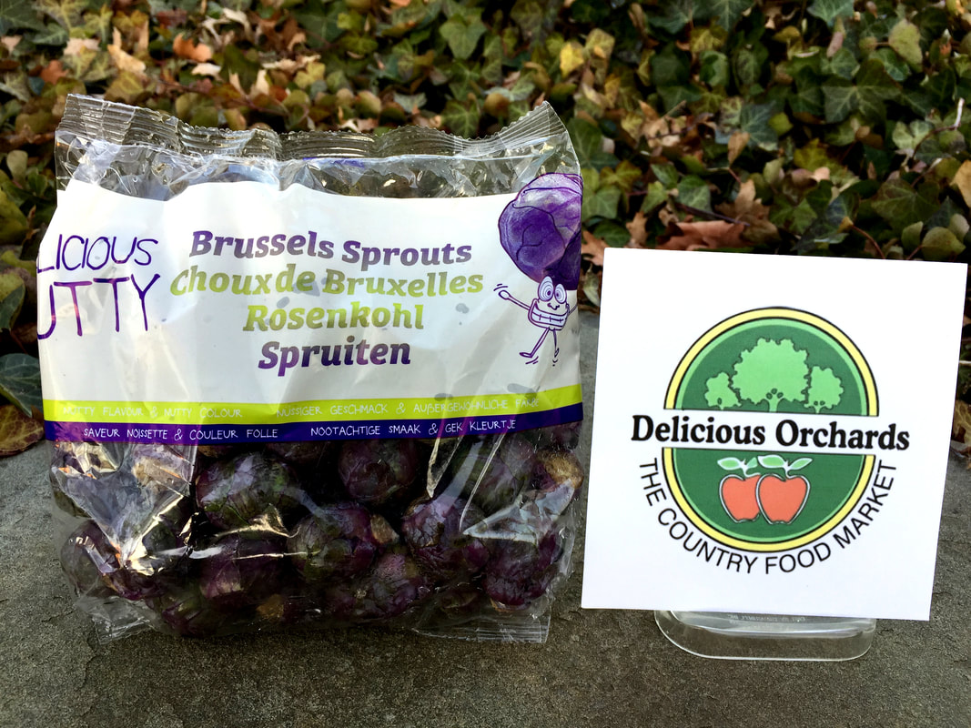 To go along with the meatloaf, I purchased at Delicious Orchards some purple Brussels sprouts. My son recently shopped there and mentioned he saw them. Fortunately when I placed my Personal Shopping order, they were still available. For dinner, I merely cleaned them up, tossed with some olive oil and seasoned them with salt and pepper. I roasted them in the oven along with the meatloaf.