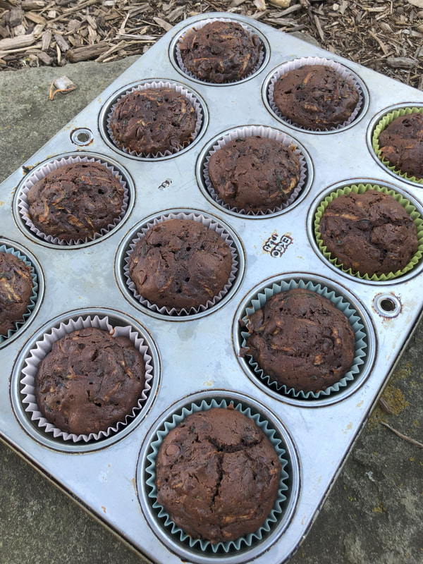 Next up was the zucchini. I asked my six-year-old granddaughter for suggestions and she enthusiastically said Double Chocolate Zucchini Muffins. My daughter has prepared this recipe from the website “What’s Gaby Cooking,” but I thought they sounded too sweet. A quick check of the King Arthur Baking website landed me on their recipe for Double Chocolate Zucchini Bread. For the recipe you’ll need eggs, honey, vegetable oil, light or dark brown sugar, salt, baking soda, baking powder, espresso powder (optional), unsweetened cocoa (Dutch-process or natural), unbleached all-purpose flour, two cups shredded zucchini and chocolate chips.