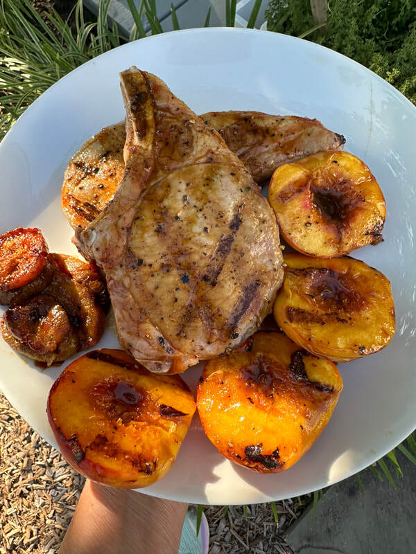 Grilled Pork Chops with Glazed Peaches