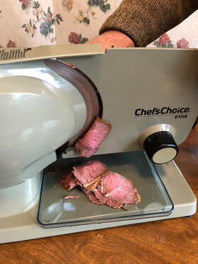 When our handle broke off during the Christmas season, I went to Williams-Sonoma for a new electric slicer. As I am on the Williams-Sonoma mailing list, they continually send me coupons for either 20% or 25% off a purchase. I purchased the Chef Choice electric meat slicer for $120 (a 20% off coupon). It was well worth the price. I use an assortment of dry rubs and liquid pastes that I purchase on sale at Williams-Sonoma to season the meat. Instead of paying approximately $10/lb. for turkey, it costs me $5.79/lb. for skinless, boneless turkey breast. Now that my husband has grown tired of deli ham, I also roast a boneless beef sirloin roast ($7.99/lb. at Wegmans). For the roast beef I use dry rub brine that, unfortunately, is no longer available at W-S. However, they do offer a wide variety of new and exciting flavors for poultry and beef.