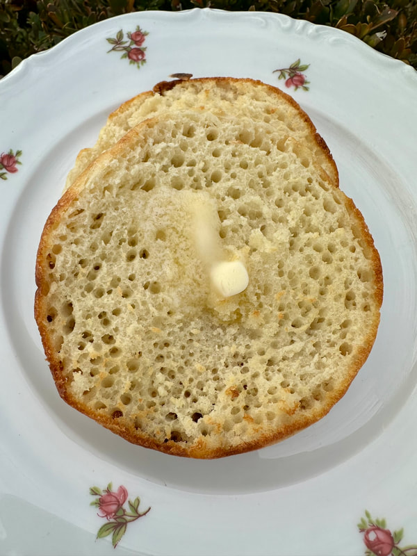 I couldn’t wait to try these once they were cooled. After cutting one open, you could see the nook and crannies just like Thomas’s English Muffins. A little toasting and some salted butter to melt into the nooks, it was taste time. These were so good. Both my husband and I devoured our shared muffin. They were perfect the first time out. Ms. Alston also has a recipe in her book for Whole-Wheat Bran Muffins that I can’t wait to try. She also gives variations for Cinnamon Raisin, Corn-Rye and Raisin Rye.