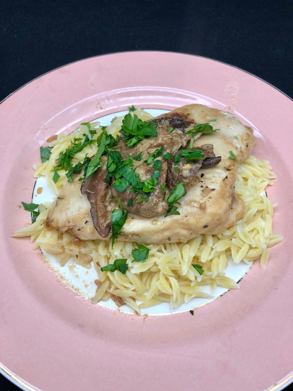 I also tried a recipe that my daughter found on a website called Half Baked Harvest for Creamy Balsamic Mushroom Chicken Marsala. This dish had some nice twists to make it a wonderful variation on a classic recipe. Besides boneless chicken breasts, you’ll need salt, pepper, all-purpose flour, garlic powder, extra virgin olive oil, butter, mushrooms, shallots, garlic, fresh thyme, balsamic vinegar, chicken stock, Marsala wine, heavy cream and red pepper flakes. The recipe takes 10 minutes to prep and cooks in 20 minutes, making this a great weeknight meal for busy families or company. I served the chicken on a bed of orzo.