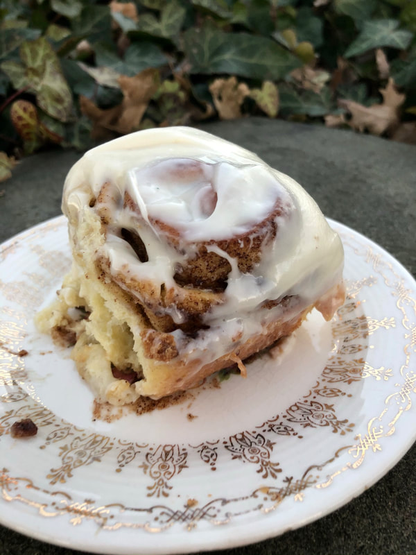 The buns are topped with a delicious, not too sweet, cream cheese frosting. I let the buns cool a bit, but they had enough warmth to enable me to spread the frosting easily from edge to edge. I couldn’t wait to dig in and try these warm, freshly frosted buns; they didn’t disappoint. They were tender, just the right amount of cinnamon filling and frosting with just enough tang from the cream cheese to offset the cinnamon filling. I recommend eating them warm, but even the next day they were just as good. My co-workers enjoyed them, as did the neighbors with whom I shared them. My husband and I didn’t want to be tempted with them left on the kitchen counter.