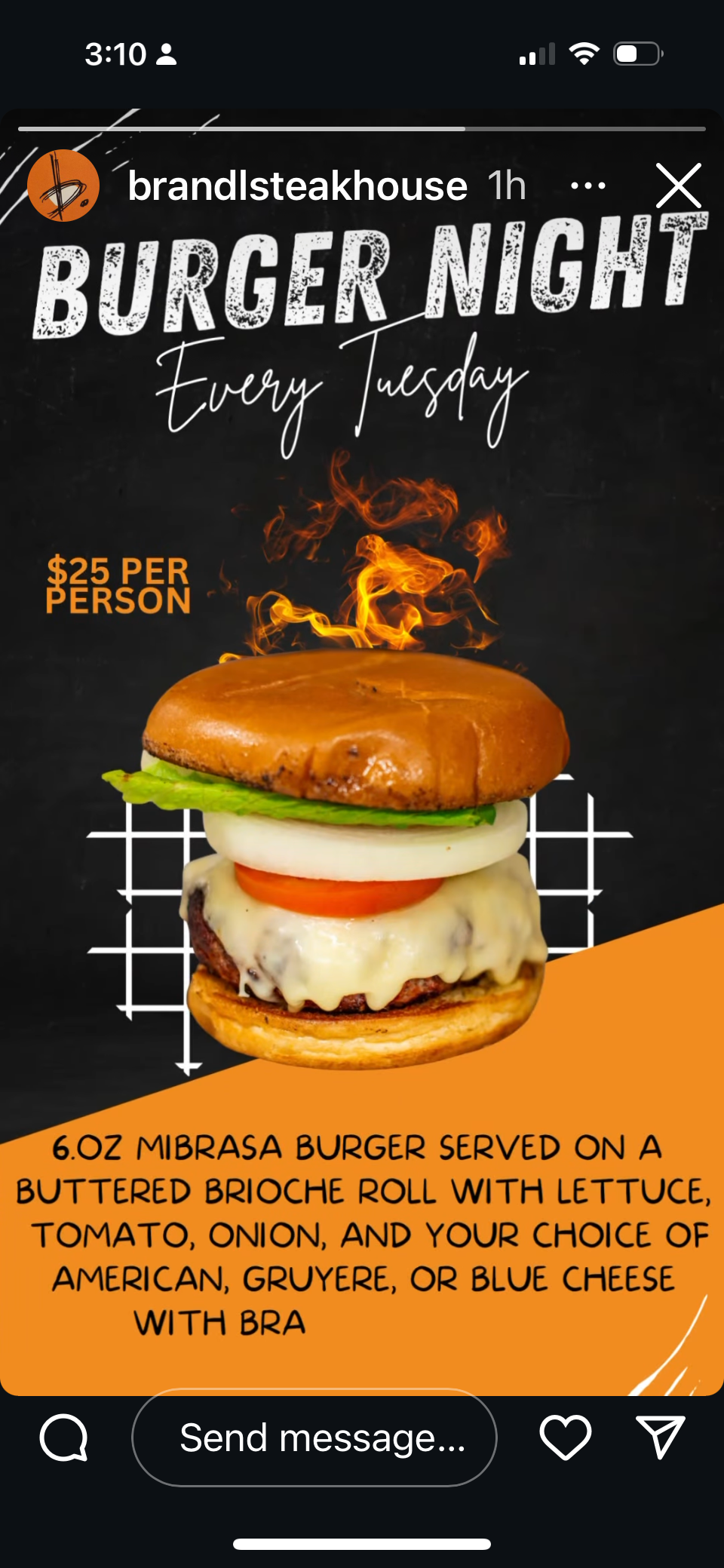 My husband and I love Brandl Steakhouse in Belmar.  Tuesday night special is a 6 oz. burger served on a buttered brioche roll with lettuce, tomato, onion and choice of American Gruyère or blue cheese for $25.  Wednesday is lobster roll night, Thursday they have sliced garlic steak with frites, Friday is fresh catch seafood and lastly, Sunday, is gnocchi of the day. You can call the restaurant to see what type of seafood and gnocchi they’re preparing for that evening. These nightly specials are $25. (however, call the restaurant to verify as it’s not stated on their website).