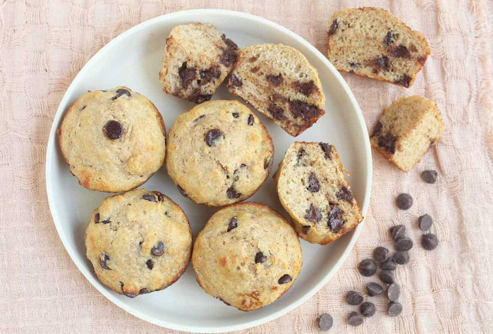 My granddaughter was glued to an iPad when I arrived the other morning. In order to direct her attention to something else, she was agreeable to help me bake some Healthy Chocolate Chip Muffins, a recipe my daughter found on the website Yummy Toddler Food. Both she and her sister love the packaged mini muffins, but these are a healthier version. Instead of white flour we used whole wheat, swapped butter for applesauce (recipe calls for butter) and added Greek yogurt. Also, for the recipe you’ll need baking powder, baking soda, salt, maple syrup, eggs, vanilla extract and chocolate chips