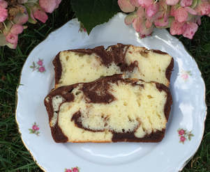 When I was growing up in north Jersey, I remember the milk man delivering milk to our house and there use to be a man in a panel truck filled with delicious baked goods. He would pull into the driveway and my mother would purchase wonderful crumb buns and a marble loaf cake with chopped walnuts. While I could make this cake any time, I didn't need to have it lingering on my kitchen counter testing my willpower not to indulge. However, this