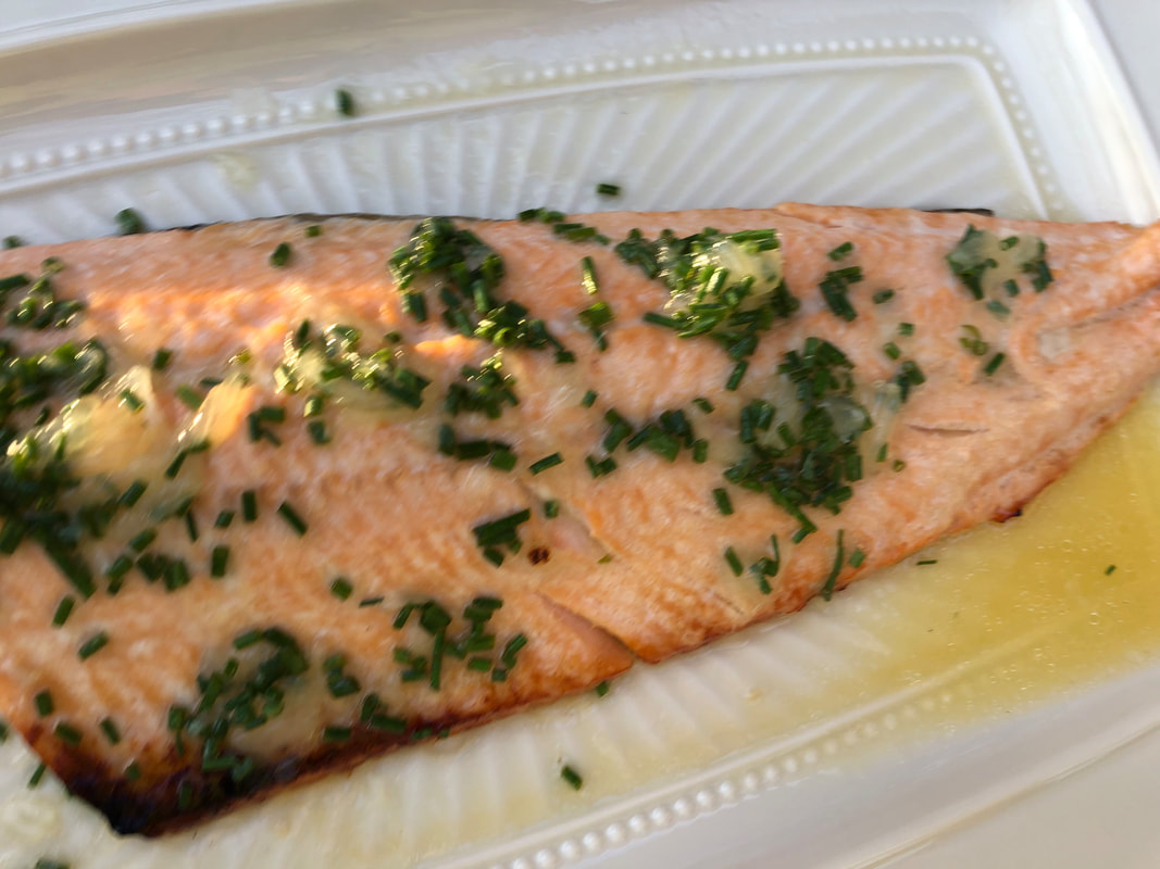 Arctic Char, part of the fish family called Salmonidae, is a cold water fish found in alpine lakes and arctic and subarctic coastal waters. Arctic Char is lighter and milder in taste than salmon.  A web search lead me to the website www.food52.com for a recipe called broiled lemon-honey Arctic Char with citrus sauce. The recipe for the sauce recommenced using a mix of citrus, I only had lemons and orange juice on hand. The recipe suggested a blend of citrus such as tangerines, navel oranges, Cara Cara oranges, nectarines or blood oranges. The recipe has a prep time of 30 minutes and only five minutes of cooking (the fish is cooked under the broiler). Besides the citrus, you’ll need honey, olive oil, fresh minced chives, a neutral oil and flaky sea salt.