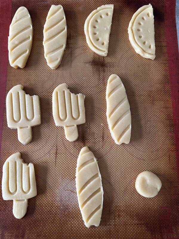 I also made sugar cookies for eating and for my granddaughter’s young friends to take home. Last summer, my daughter found some summer themed cookie cutters on sale at Williams-Sonoma, so I decided to bake a small batch of cookies using them.