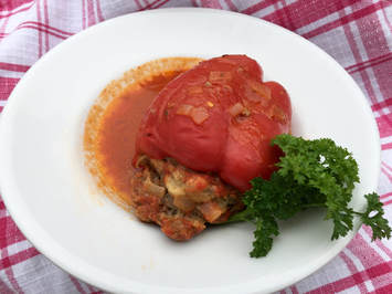 During this time, meal preparation had to be done beforehand or ingredients had to be on hand to prepare a nutritious, healthy meal and prepared in under an hour. This became a challenge, so I relied on recipes that I have made [and posted] in the past and occasionally was able to find a new one that worked out. I found a stuffed pepper recipe by Lidia Bastianich. Lidia’s recipe called for ground pork, however, I used ground beef. The dish was very flavorful worked out well as a do ahead meal.