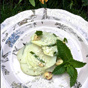 Next, I had kohlrabi. After researching what it was, I discovered that it had the texture of a radish and the sweetness jicama. However, I didn't find that the case with either the kohlrabi or the jicama that I previously tasted. In any event, I didn't want to waste the vegetable and proceeded to find a recipe. I came across a recipe for shaved kohlrabi with apple and hazelnuts. It sounded good and I had a Jazz varietal apple and hazelnuts in my freezer. The "salad" was interesting. I think it needed to be zipped up a bit. I had in my pantry some apricot balsamic vinegar, which helped it a bit. Today I brought home some Meyer lemon olive oil and Sicilian lemon white balsamic vinegar. I'll try those to see if it brightens the flavors. I'll let you know how it comes out.