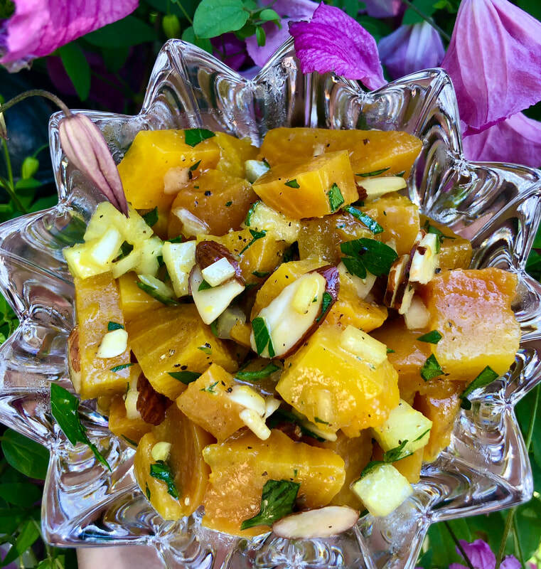 Last week at the Asbury Fresh farmers market, I picked up a bunch of golden beets from Rolling Hills Farm. I did a web search and found an interesting recipe, Moroccan Cold Beet Salad with Vinaigrette. The recipe was found on the “The Spruce Eats” website and is by Christine Benlafguih. For the recipe you’ll need, red beet roots, fresh parsley, fresh lemon juice, vegetable oil, salt, fresh ground pepper, and red onion. Although the recipe calls for red beets, it works perfectly with golden.