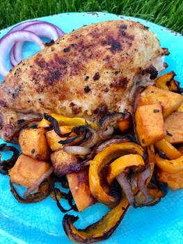 Sheet-Pan Chicken with Sweet Potatoes and Peppers