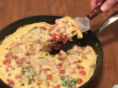 This week I think I’ll prepare a frittata. The recipe I selected is tomato, garlic and potato frittata from the May 2001 issue of Gourmet Magazine. The recipe takes 30 minutes from start to finish. You can add a nice tossed salad to round out the meal and perhaps some crusty Italian bread to go with it.