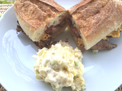 As I previously mentioned, I have some London broil leftover. So this evening my husband will get his cheese steak sandwich for supper. I was feeling ambitious, so I decided to make a small batch of potato salad to go along with it.