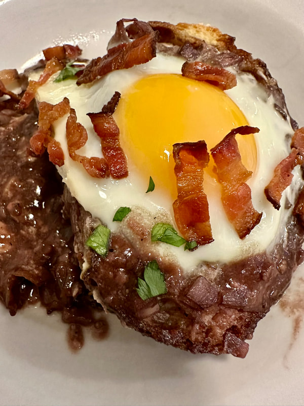 This was an interesting and tasty dish. The bread provided a bit of texture against the softly baked eggs. The sauce was very flavorful from the garlic and shallot mixture. The wine offered a subtle flavor when mixed with the chicken stock. Overall, an impressive meal.
