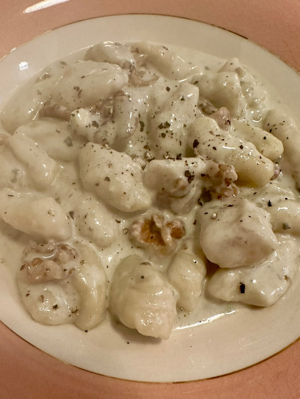 My husband and I enjoy going to a restaurant in Asbury Park called Flavia’s Cucina Romana. Whenever I go I usually order potato gnocchi with gorgonzola and walnuts. I decided to try making this recipe at home using America’s Test Kitchen recipe for instant potato gnocchi and Gorgonzola sauce from the ATK site as well. For the recipe you’ll need heavy cream, white wine, the cheese, toasted walnuts, kosher salt and freshly ground pepper.