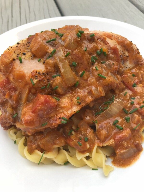 As I said before, one can’t have too many chicken recipes. I’ve been holding on to a recipe by Sam Sifton of The New York Times since April for Chicken Paprikash. For the recipe you’ll need chicken thighs and drumsticks, kosher salt, black pepper, neutral oil, unsalted butter, large yellow or Spanish onion, fresh garlic, Hungarian paprika (sweet or hot or a combination), all-purpose flour, crushed tomatoes or a fresh tomato that’s chopped, chicken broth, egg noodles and sour cream.