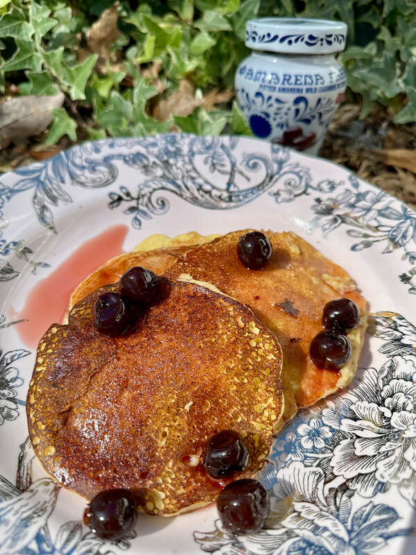 While there is an accompanying Blueberry Sauce recipe, I opted for Fabbri 1905 Amarena Cherries. These cherries from Italy are both sweet and tart, unlike American cherries or maraschino. The pancakes topped with these cherries were absolutely delicious! The lemon and sweet/tart cherry flavor played well against each other. I didn’t even use maple syrup as the cherries were the perfect complement to these pancakes.