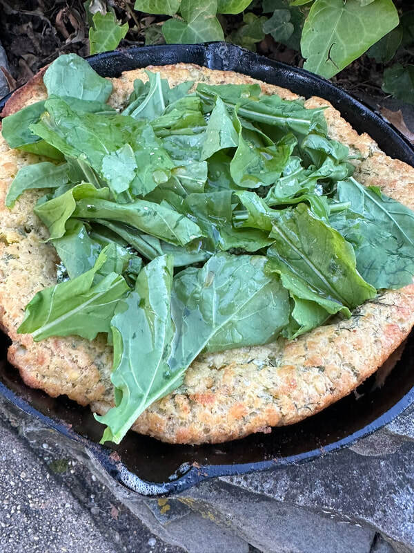 I had some arugula in our last CSA box. While I could have made a salad with it, I found a recipe by Yewande Komolafe on The New York Times/NYT Cooking website for a Goat Cheese and Dill Dutch Baby. I’ve never made a savory Dutch Baby, but I’m always game to try new things. For the recipe you’ll need plain goat cheese, fresh dill, olive oil, a lemon, kosher salt (Morton), ground black pepper, all-purpose flour, 8 eggs, whole milk, unsalted butter, tender greens such as watercress, spinach or arugula and honey.