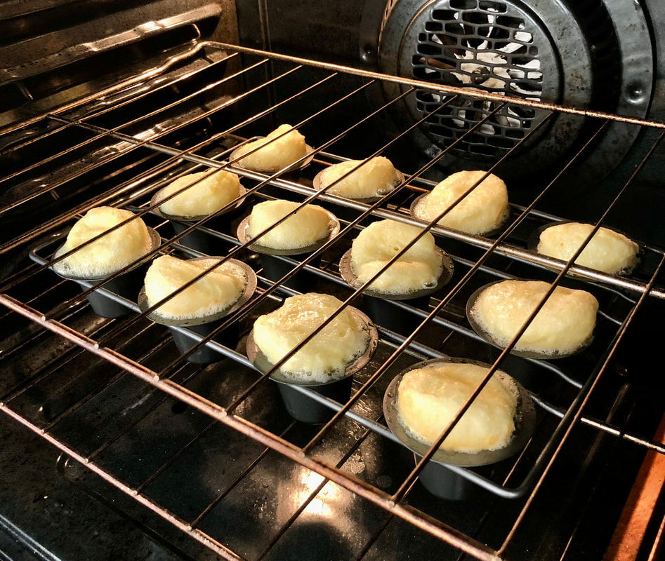 - Preheat oven to 375°F. Generously grease six 2/3-cup popover tins or nine 1/2-cup muffin tins.
