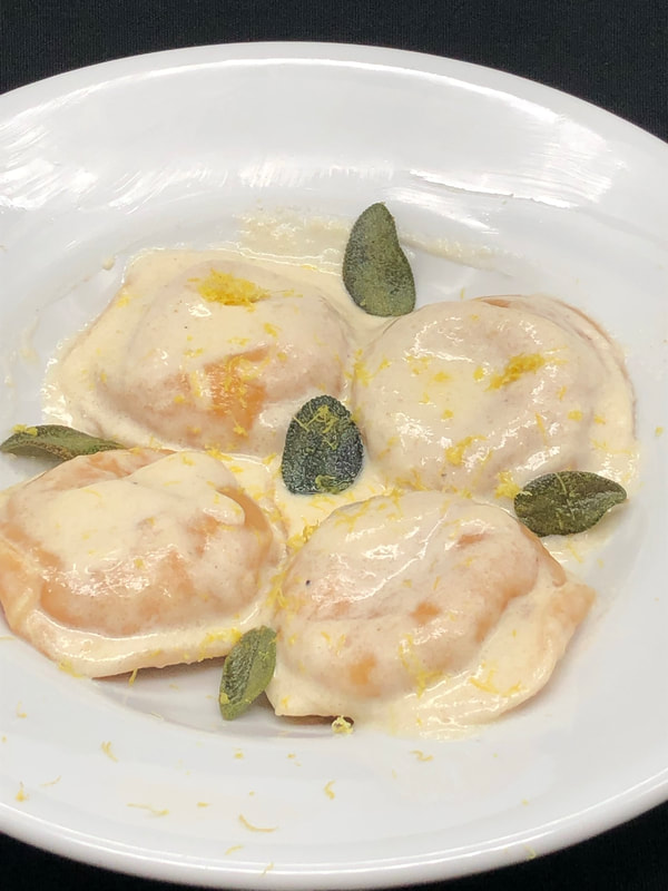 Pumpkin Ravioli with Parmigiana Cream Sauce,