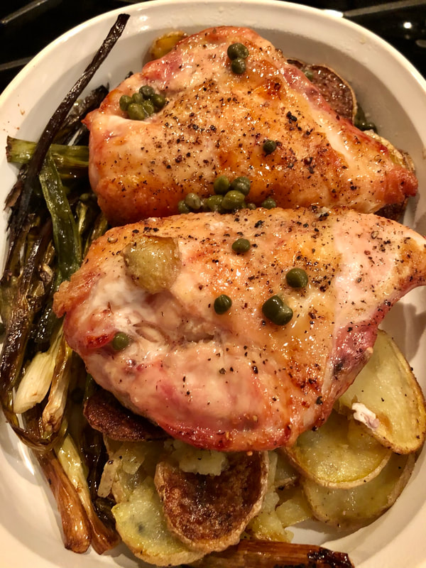 Sheet-Pan Chicken with Potatoes, Scallions and Capers