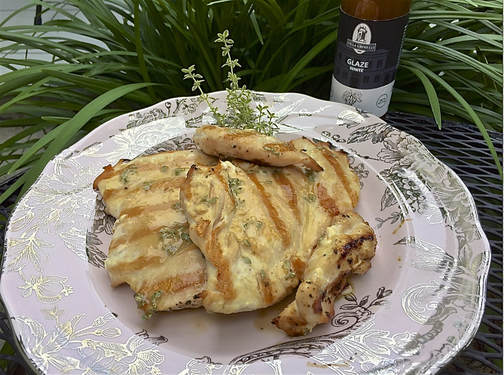 I had to work until 6 p.m. the other evening and had some boneless chicken breasts ready for grilling. Fortunately, I now had this balsamic glaze to use, but was a bit hesitant about using it alone. I decided to add some Dijon mustard and fresh thyme to the balsamic glaze. All the measurements were eyeballed, but were spot on. I cooked the chicken on one side and when I turned the breasts over, brushed it with a bit of the mixture. The chicken tasted delicious, you got a bit of sweetness and tang from the balsamic glaze and mustard, but had the aroma of the thyme which helped bring all the flavors together. Balsamic glazes are a great way to change the ordinary to extraordinary
