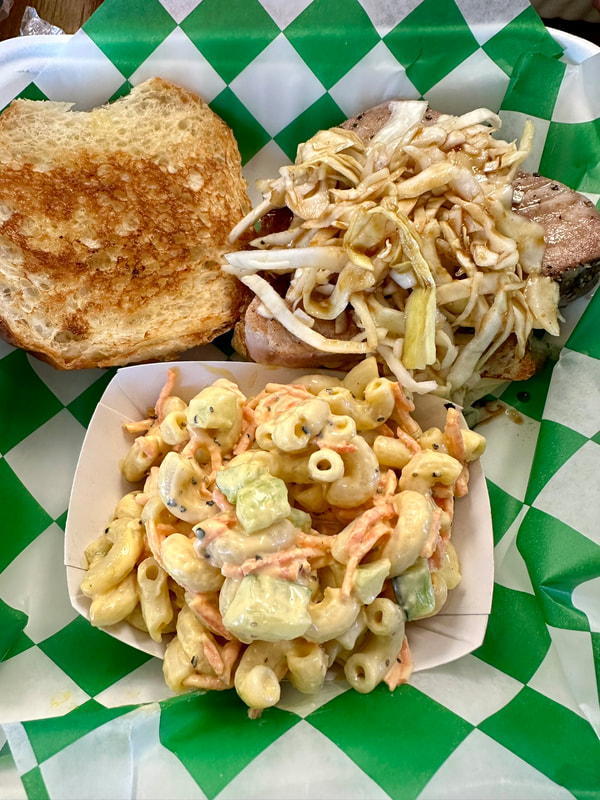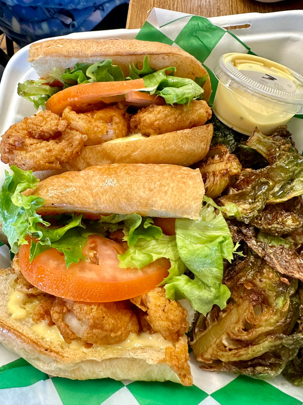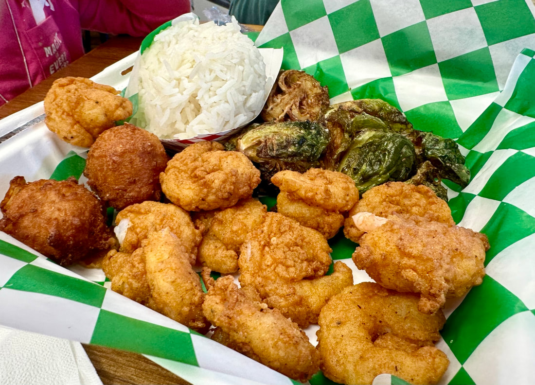 Before my daughter and her family left, we joined them for lunch at Greentail’s Seafood Market and Kitchen in Nags Head. My daughter and her husband had the special of the day, Crispy Bluefin Tuna Burrito with Mexi-street corn spread, cheese blend, pickled onion, coconut rice and beans. They both devoured it in no time. My granddaughters shared a Greentail Fried Shrimp basket. The girls loved the hush puppies that accompanied their meal and the shrimp had a light, crispy coating. My husband had the Fried Shrimp Po Boy with lettuce tomato, malt vinegar, aioli, sriracha on a hoagie roll. He also thought the shrimp were delicious. I chose the “Dewey” which was local seared tuna steak with pickled cabbage and pineapple teriyaki glaze…outstanding.