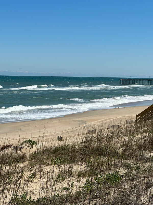 On Wednesday night, all the nieces and nephews arrived for a gathering at our rental home. Our group came from Monticello, Georgia, North Carolina (Winston-Salem, Asheville, Kitty Hawk, Kill Devil Hills and Raleigh) Winchester, Virginia, and our group from New Jersey. One of our nieces was disappointed that I didn’t prepare an Italian meal, however, we were a group of 24 that included 6 kids under 8, 1 vegan, 1 pescatarian and 1 vegetarian. My sister-in-law Karen made a vegetarian/vegan entree while the rest of us enjoyed a barbecue meal catered by High Cotton Barbecue of Kitty Hawk. I ordered hand chopped pork, fried chicken, St. Louis cut ribs, sliced beef brisket, chopped slaw, baked beans, green beans and hush puppies. The chopped pork came with a vinegar base BBQ sauce and the ribs had a thick, rich sauce. The baked beans were delicious, but my husband is still raving about the green beans. My daughter thinks it was the freshly ground pepper that made them so good. I’m going to reach out to them to see if they’ll either share the recipe or the ingredients.